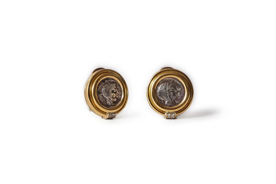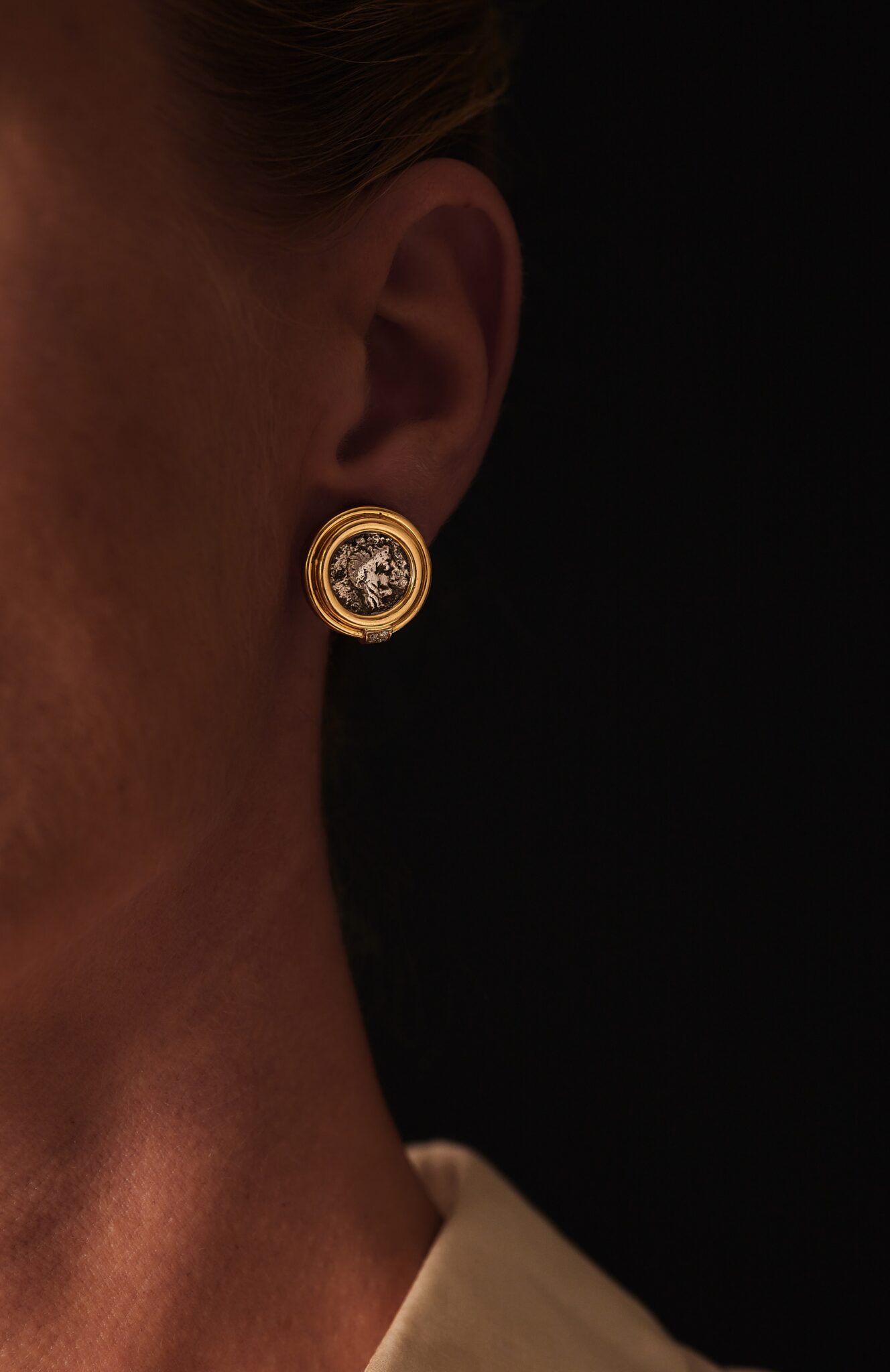 Bvlgari Monete, Faustina the Younger, earrings, 18kt gold with accent diamonds.